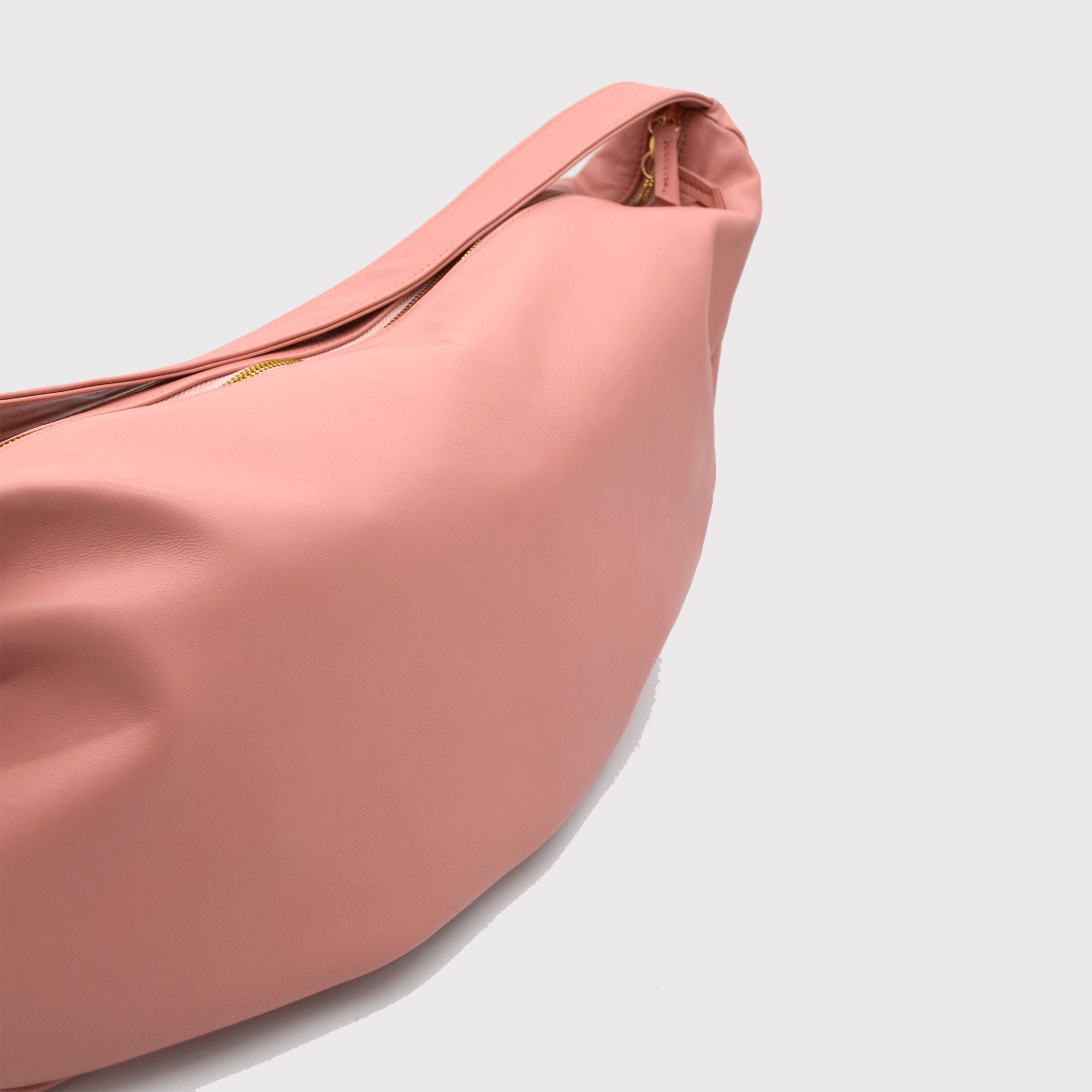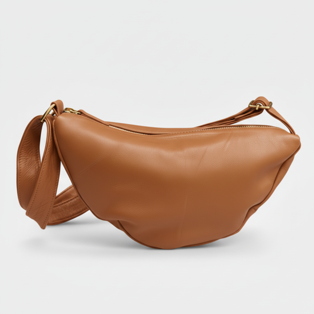 Una borsa morbida e fluida, dal volume organico, ispirata al movimento dell'acqua e alla materia viva della città.
